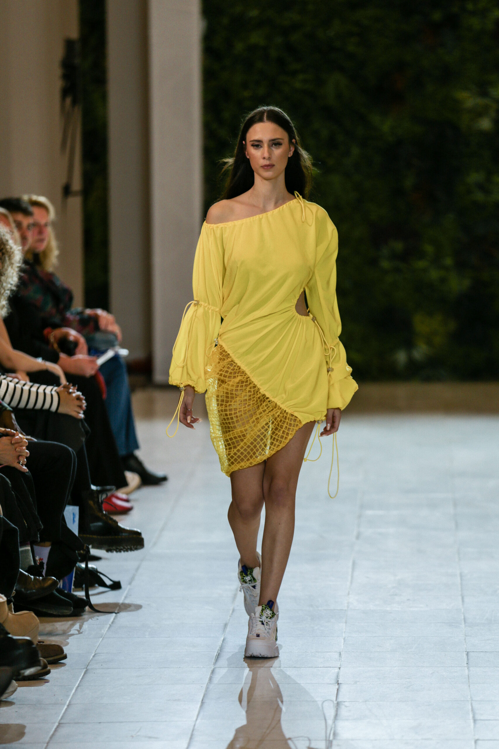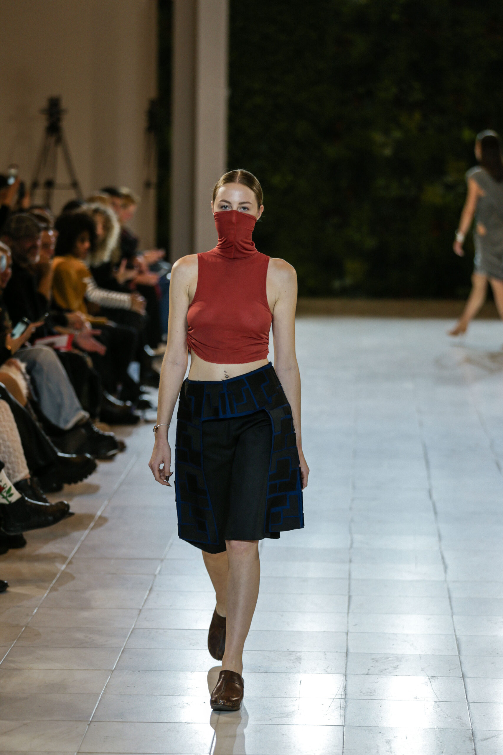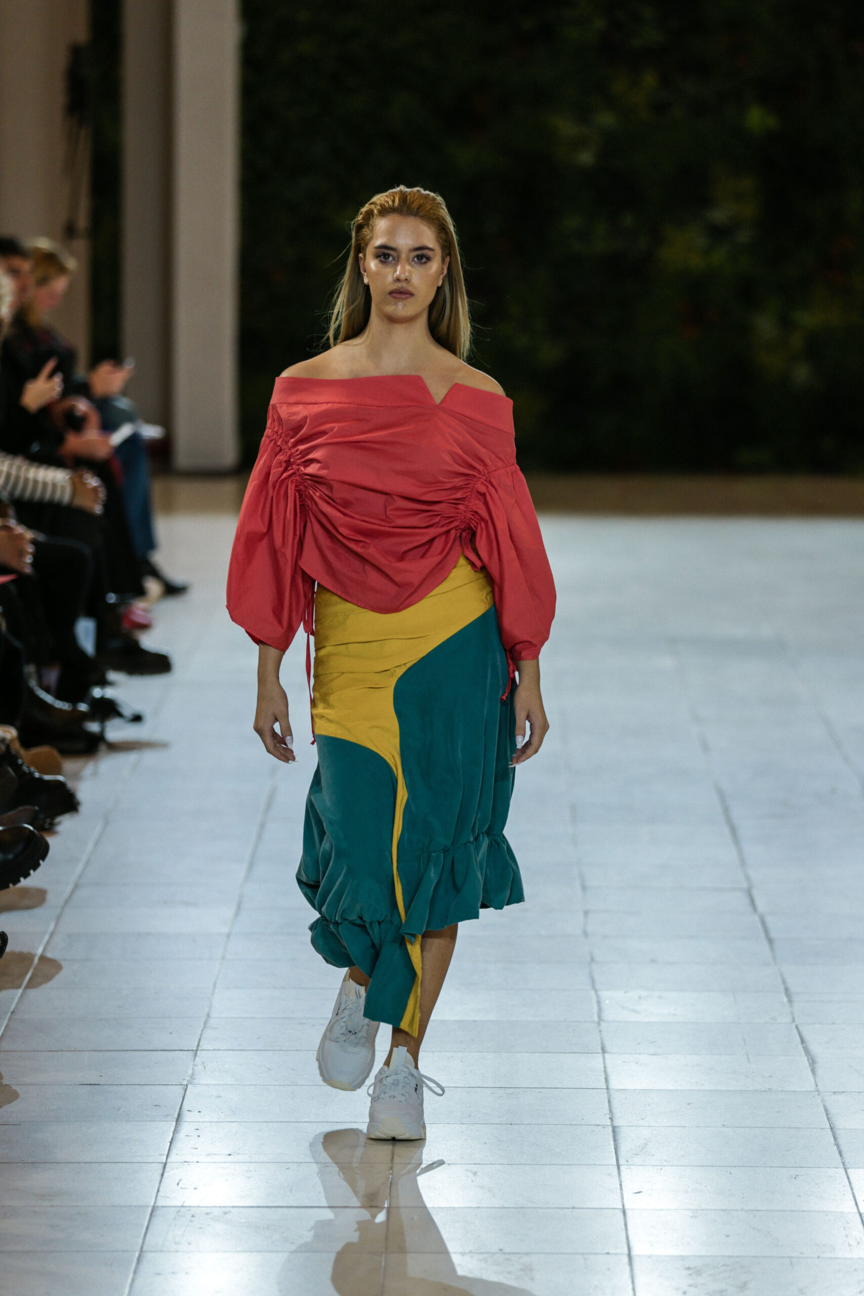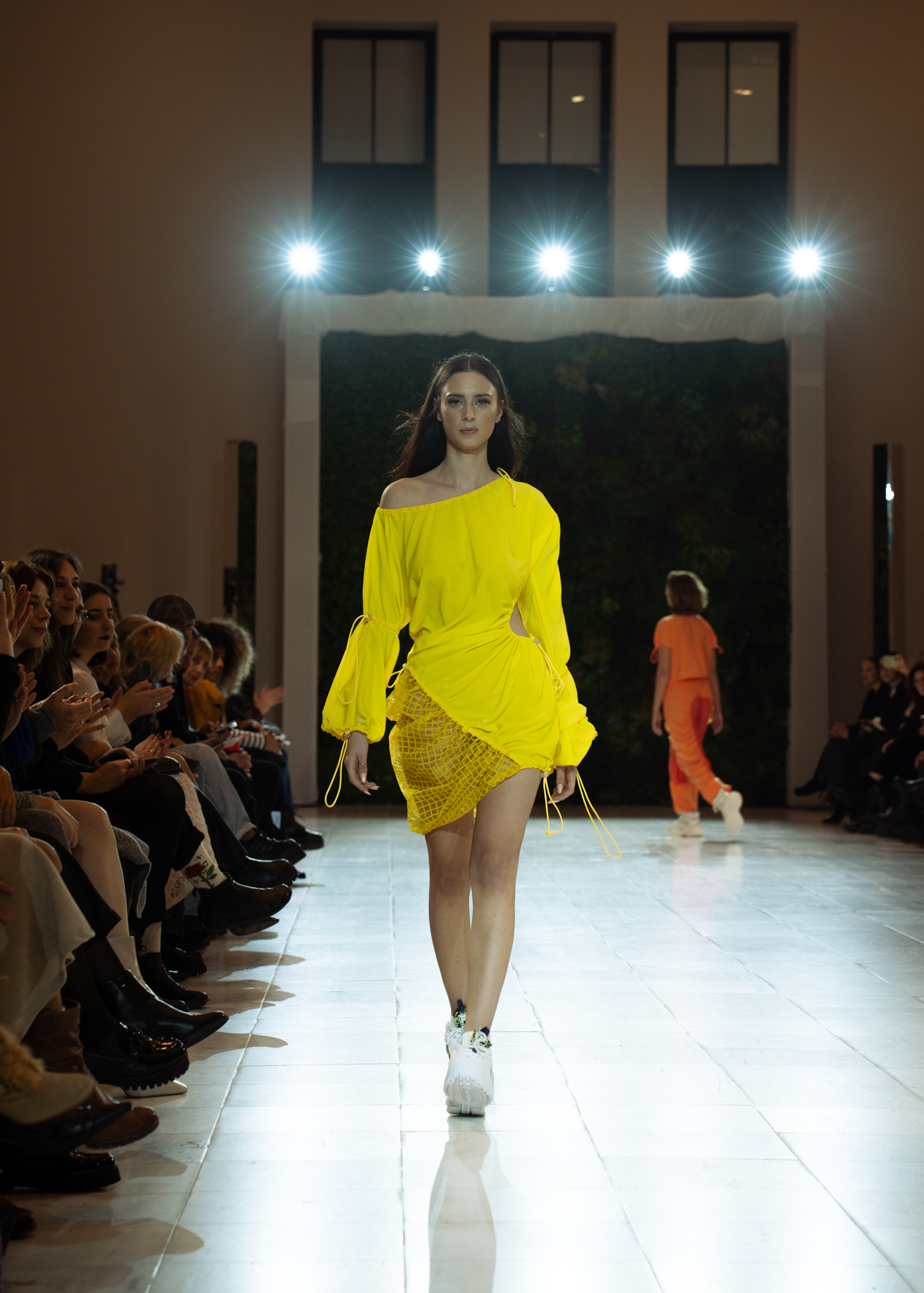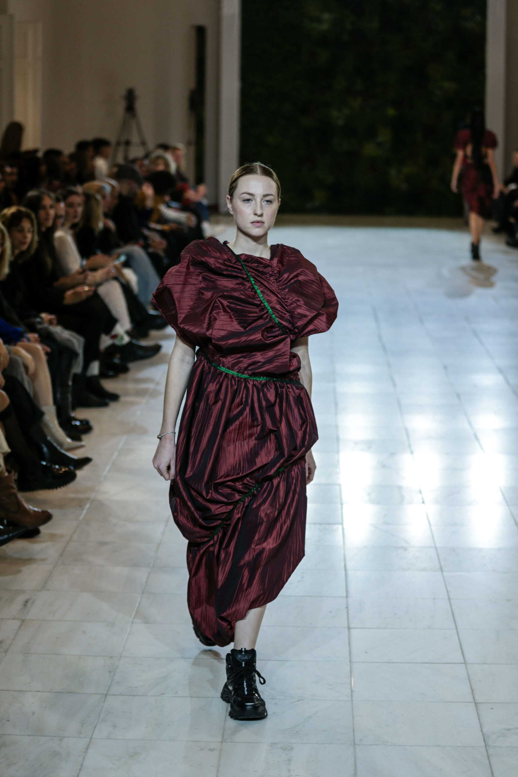 Στην κατάμεστη αίθουσα του catwalk, το κοινό είχε την ευκαιρία να ζήσει ένα “ταξίδι” πειραματισμού και αναζήτησης. Να δει πώς αντιλαμβάνονται τις σύγχρονες προκλήσεις τα μέλη της κοινότητας Fashion Design του AKTO καθώς και πώς πειραματίζονται κι εκφράζουν τη δημιουργικότητά τους, ενώ ακόμα βρίσκονται στο 2ο έτος σπουδών. Το show περιλάμβανε δύο ενότητες: