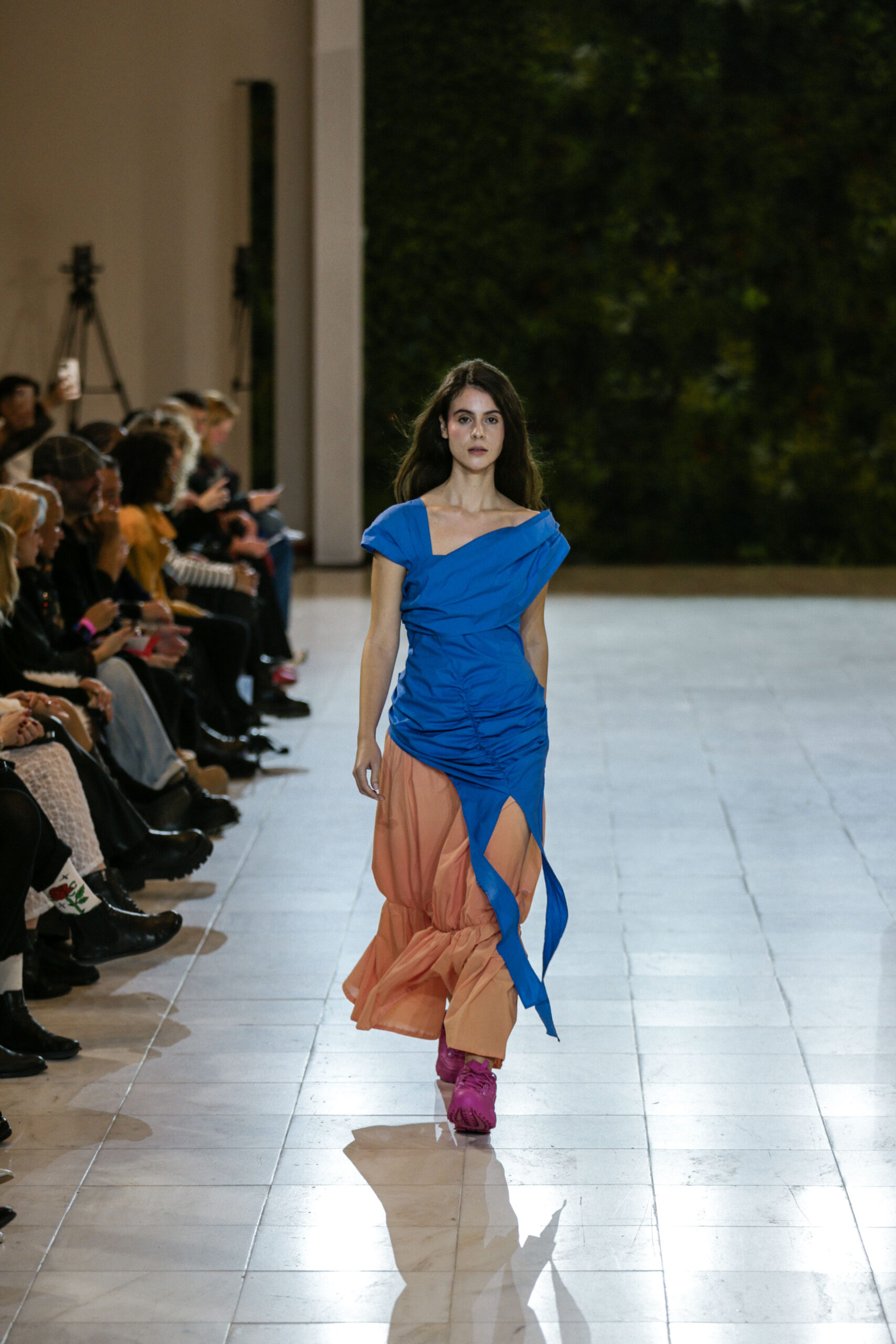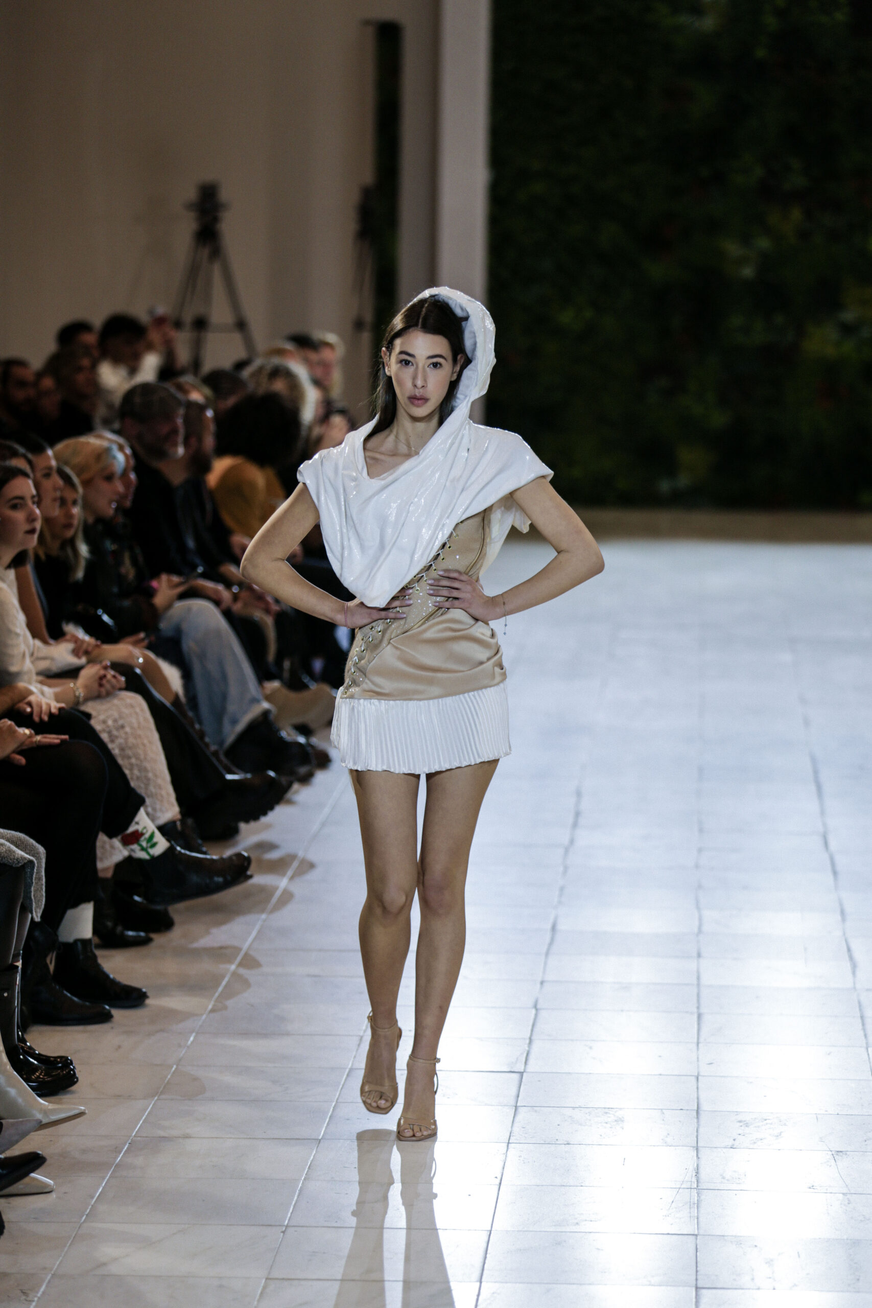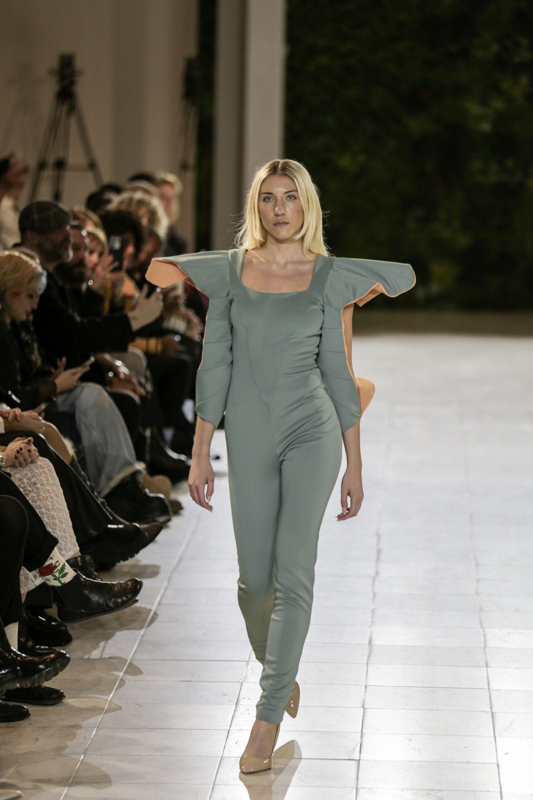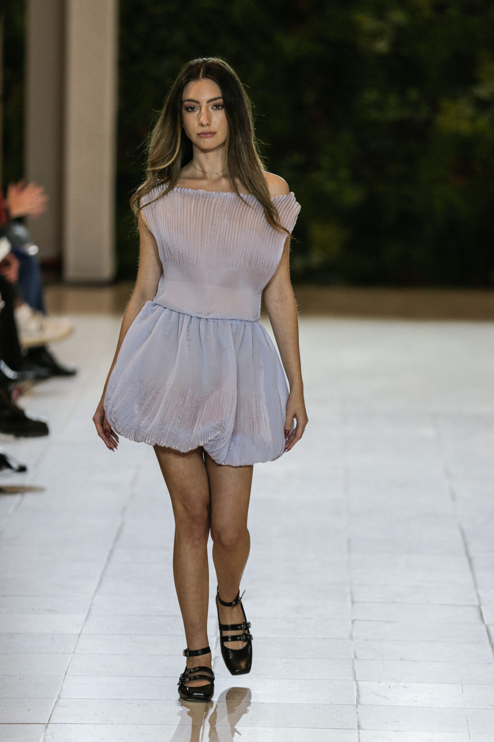 Στην κατάμεστη αίθουσα του catwalk, το κοινό είχε την ευκαιρία να ζήσει ένα “ταξίδι” πειραματισμού και αναζήτησης. Να δει πώς αντιλαμβάνονται τις σύγχρονες προκλήσεις τα μέλη της κοινότητας Fashion Design του AKTO καθώς και πώς πειραματίζονται κι εκφράζουν τη δημιουργικότητά τους, ενώ ακόμα βρίσκονται στο 2ο έτος σπουδών. Το show περιλάμβανε δύο ενότητες: