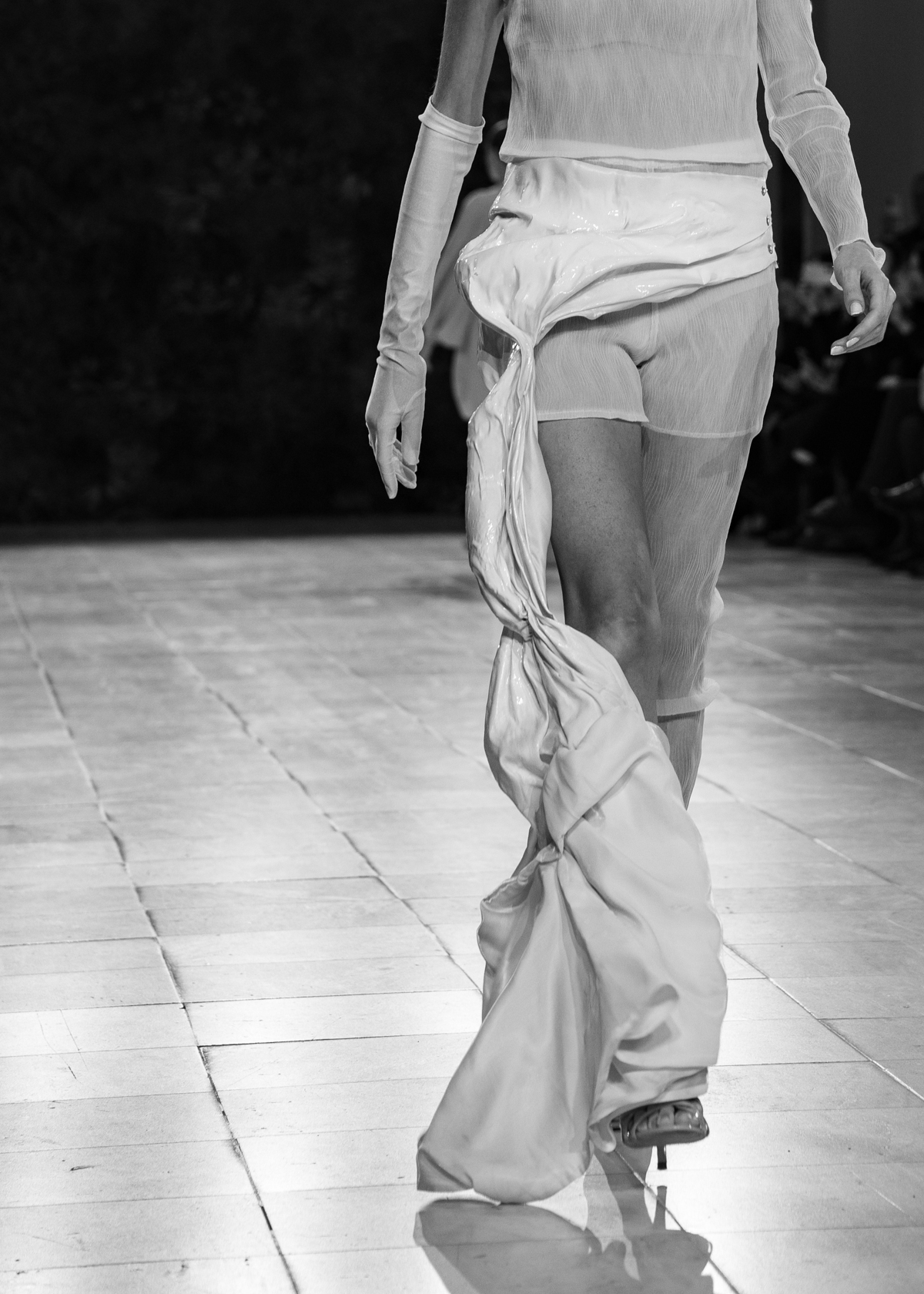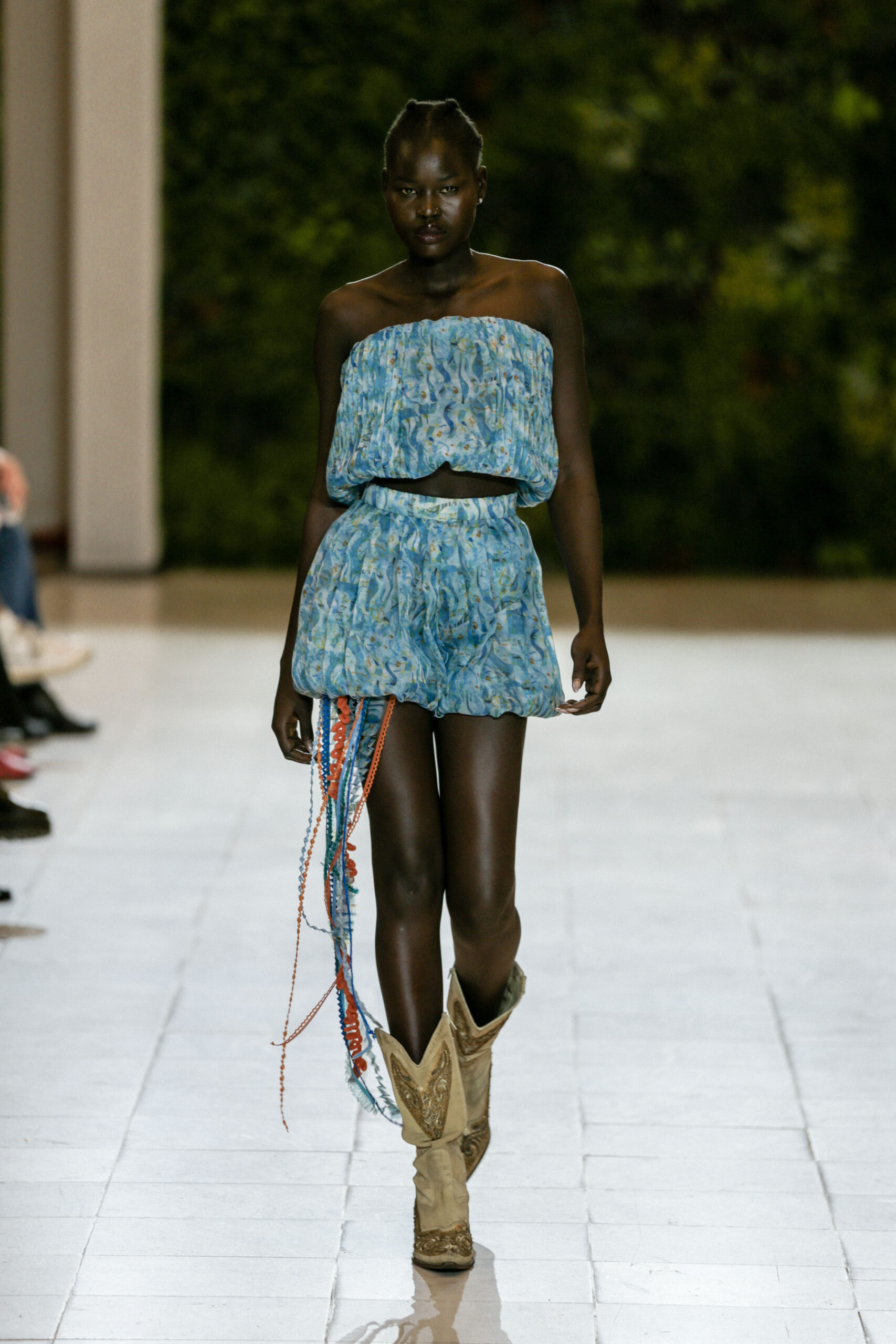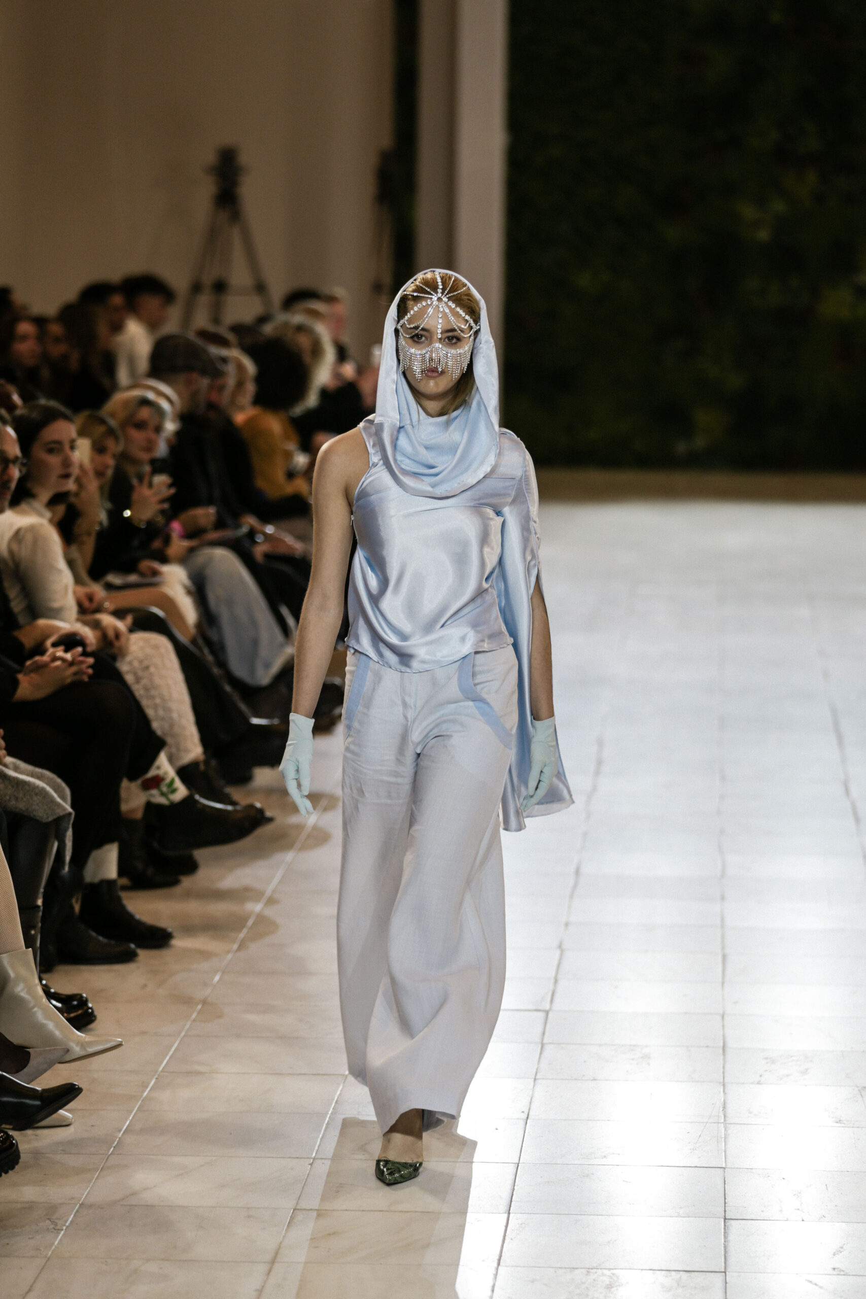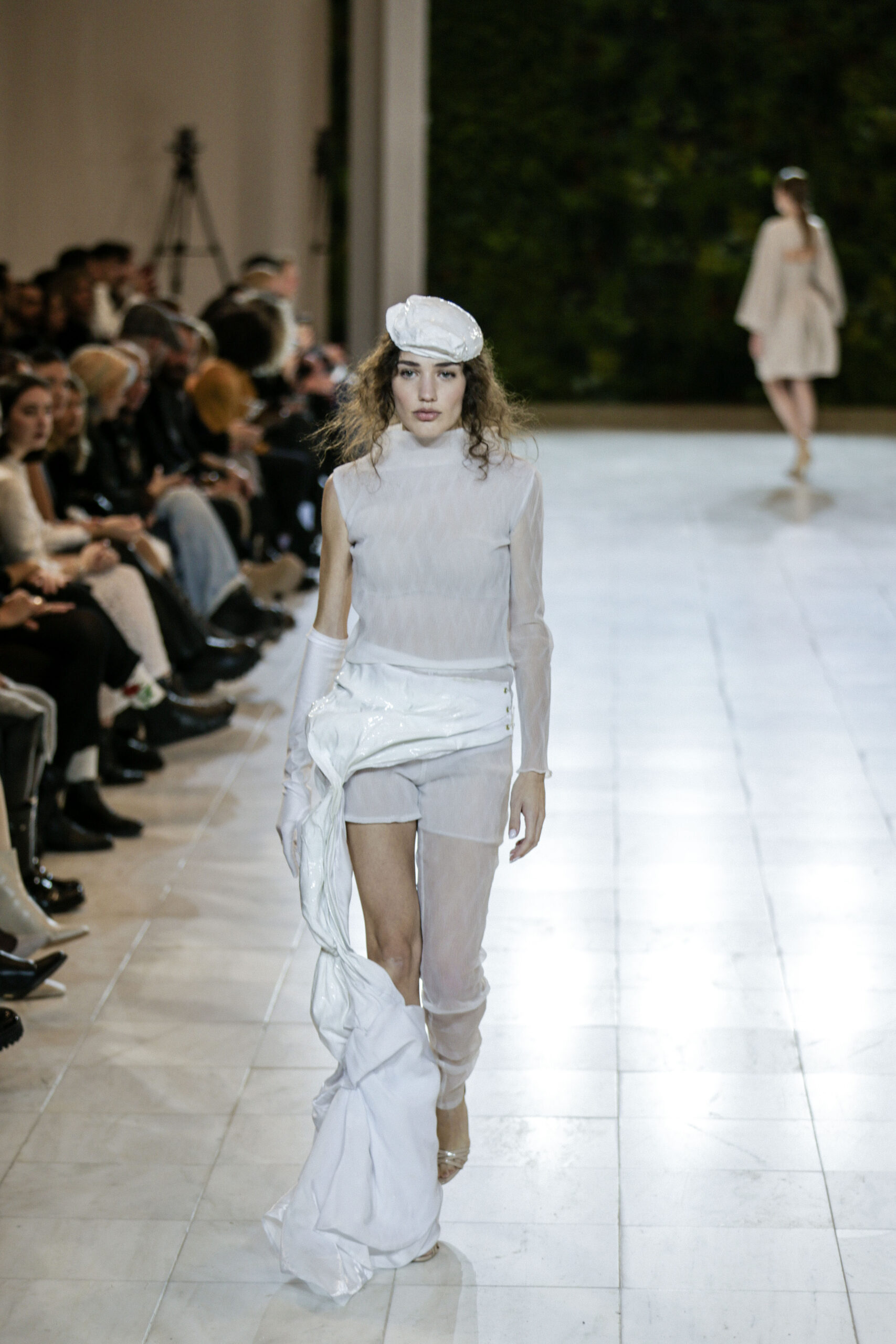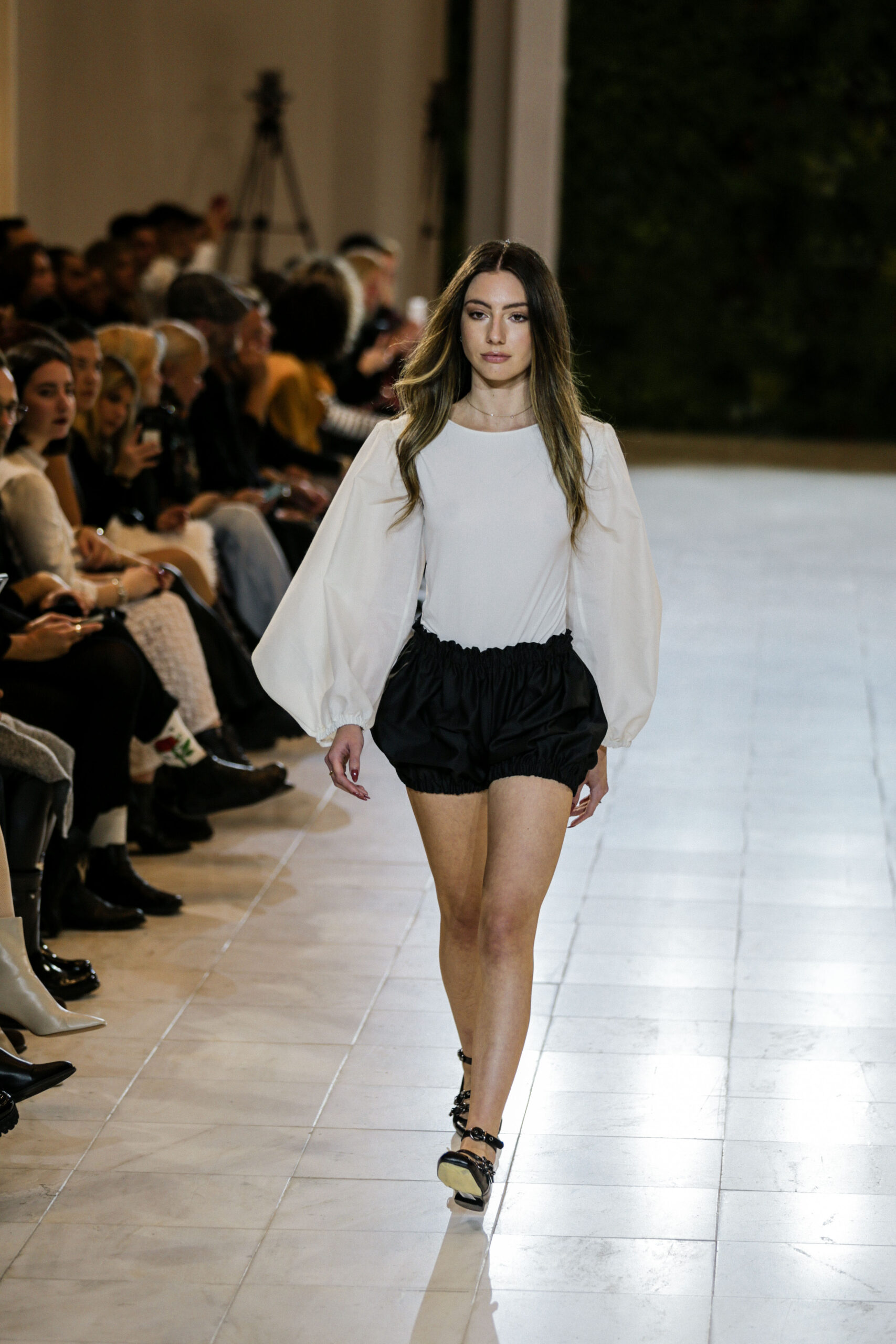 Στην κατάμεστη αίθουσα του catwalk, το κοινό είχε την ευκαιρία να ζήσει ένα “ταξίδι” πειραματισμού και αναζήτησης. Να δει πώς αντιλαμβάνονται τις σύγχρονες προκλήσεις τα μέλη της κοινότητας Fashion Design του AKTO καθώς και πώς πειραματίζονται κι εκφράζουν τη δημιουργικότητά τους, ενώ ακόμα βρίσκονται στο 2ο έτος σπουδών. Το show περιλάμβανε δύο ενότητες: