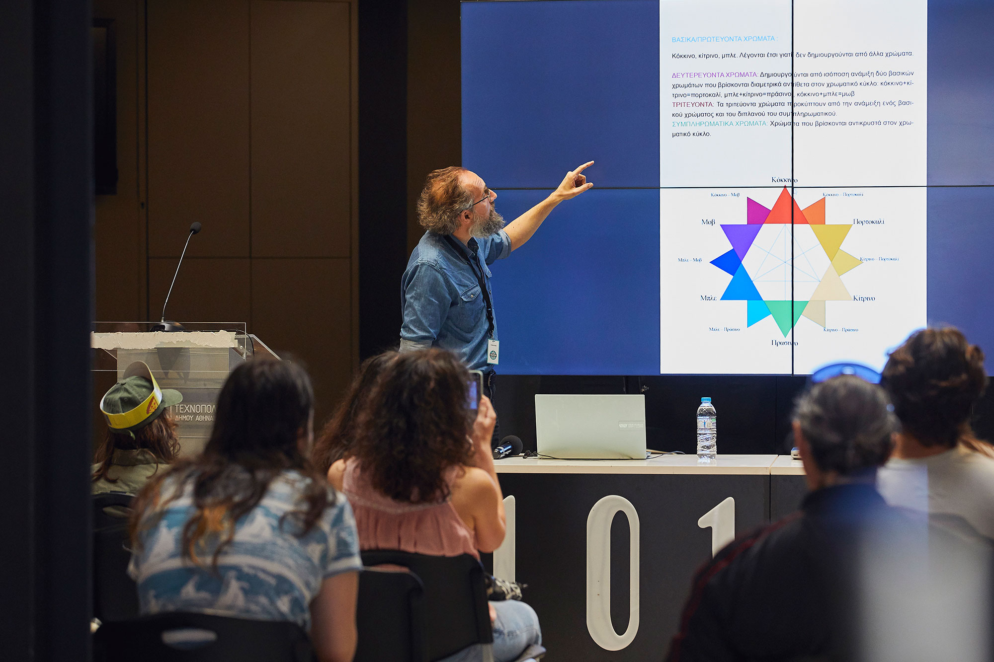 Ο χρωματισμός ενός κόμικς, εφόσον θέλουμε να είναι έγχρωμο, είναι ένα από τα βασικά στάδια της δημιουργίας του. Στο συγκεκριμένο εργαστήρι αναφέρθηκαν κάποια βασικά χαρακτηριστικά που διέπουν την ίδια την έννοια του χρώματος τόσο στα παραδοσιακά όσο και στα ψηφιακά μέσα. Παράλληλα παρουσιάστηκαν κάποια υλικά που μπορούμε να χρησιμοποιήσουμε για τον χρωματισμό των κόμικς μας. Το workshop έκλεισε με κάποιες ψηφιακές τεχνικές χρωματισμού, που μπορούμε να εφαρμόσουμε επιδιώκοντας αποτελέσματα που προσομοιάζουν στα πραγματικά μέσα.