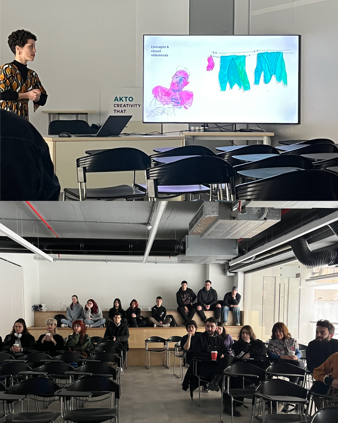 Με μεγάλη χαρά φιλοξενήσαμε στον ΑΚΤΟ (Thessaloniki Campus) την δημιουργό κινουμένων σχεδίων Ασπασία Καζέλη. Στη διάρκεια της επίσκεψής της, τα μέλη της σπουδαστικής μας κοινότητας από το πανεπιστημιακό πρόγραμμα BA (Hons) Animation είχαν την ευκαιρία να παρακολουθήσουν την μικρού μήκους animated documentary ταινία “Percebes” (2024) στο Αμφιθέατρο της Σχολής.