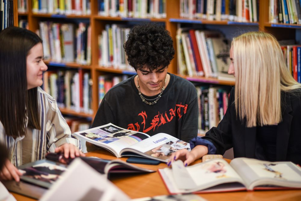 Η βιβλιοθήκη της σχολής είναι οργανωμένη σύμφωνα με τα διεθνή πρότυπα. Διαθέτει online κατάλογο, όπου ο χρήστης μπορεί να περιηγηθεί στις 40.000 περίπου εγγραφές βιβλίων, περιοδικών, οπτικοακουστικού υλικού, ebooks, DVDs, CDs, VHS, podcasts και Διπλωματικών Εργασιών σε προπτυχιακά ΒA (Hons) και μεταπτυχιακά Master of Arts προγράμματα στις εξής θεματικές κατηγορίες: